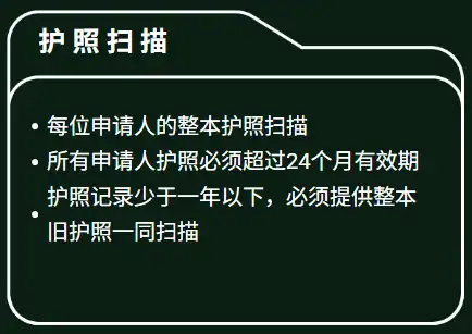 - 护照记录少于一年以下,必须提供整本 旧护照一同扫描