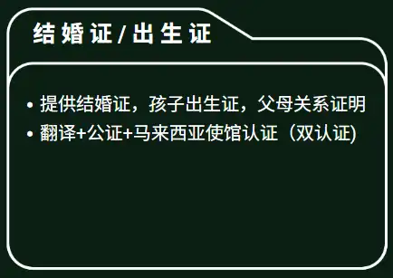 - 家庭关系证明(须翻译并由马来西亚大使馆/高级专员公署/领事馆或马来西亚外交部认证)